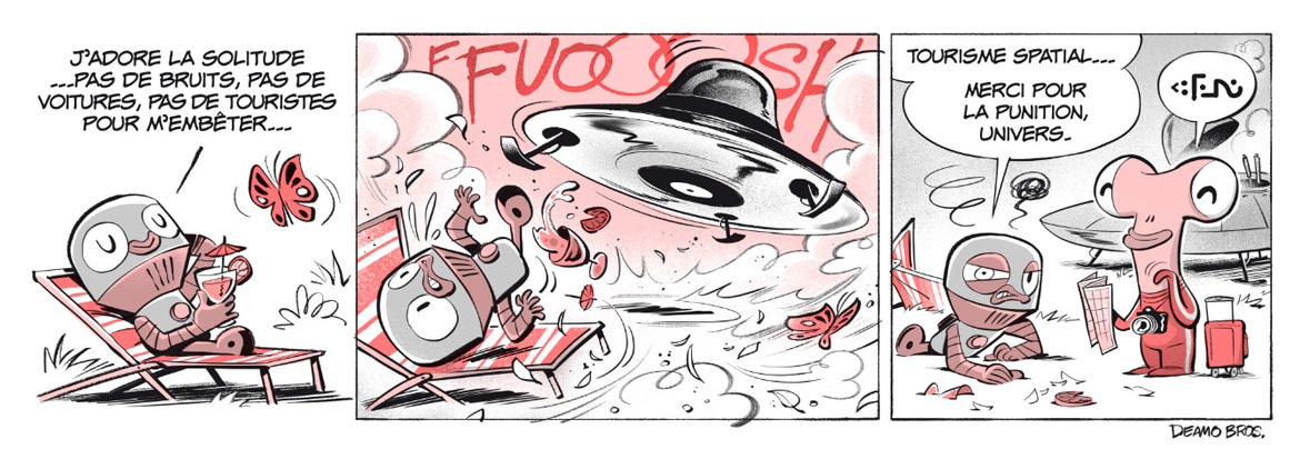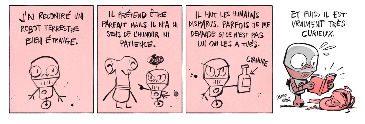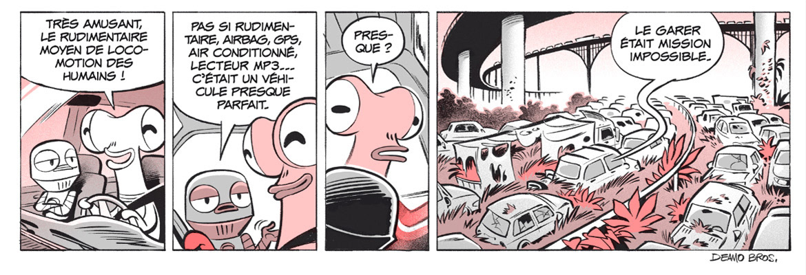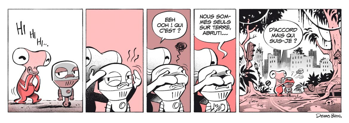 Libro de tiras cómicas postapocalípticas sobre un extraterrestre y un robot en una Tierra sin humanos. Realizado en tándem con mi hermano Danide (Deamo Bros.).